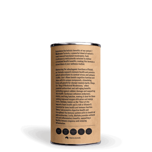 Enhance your well-being with the exceptional benefits of nature's finest organic medicinal mushrooms, crafted to rejuvenate and invigorate both body and mind. With the power of ancient wisdom, strengthen productivity, elevate mood, clear brain fog, reduce stress levels, and potentially help manage menopause symptoms.