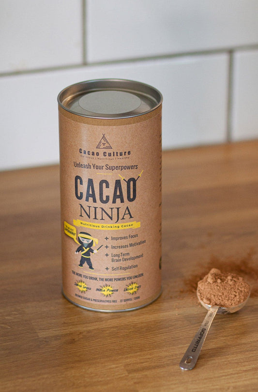Unlock your child's potential with Cacao Ninja, harnessing the natural health benefits of cacao flavonoids backed by multiple studies. This delicious blend naturally enhances focus, motivation, and self-regulation. Cacao's rich flavonoids improve cognitive abilities and concentration, supporting optimal performance. Cacao Ninja promotes self-regulation, empowering kids to navigate challenges with resilience and confidence. With high levels of stress-reducing magnesium, immune-boosting zinc, and bone-strengthening calcium, each sip or bite nourishes their well-being. Unleash their potential with Cacao Ninja – the ultimate partner for improved focus, motivation, and overall well-being.